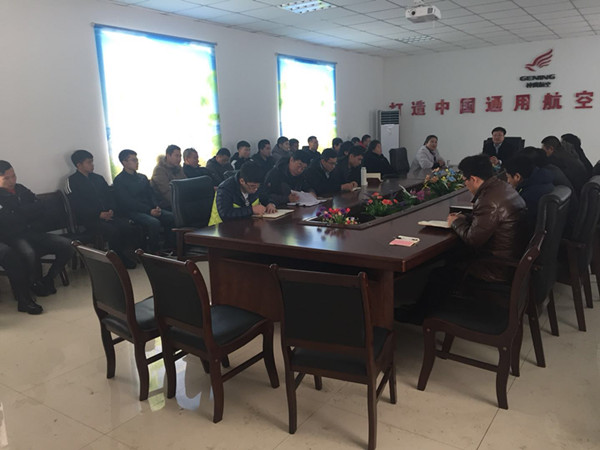通遼市神鷹通用航空有限公司全體人員在飛機(jī)制造廠小會(huì)議室召開新年動(dòng)員大會(huì)