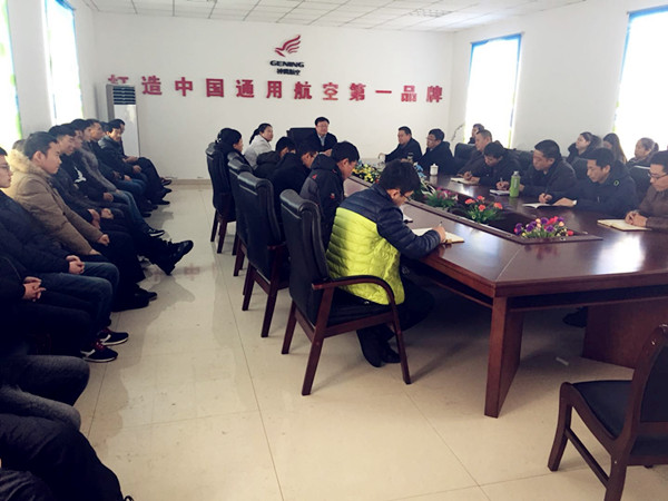 通遼市神鷹通用航空有限公司全體人員在飛機(jī)制造廠小會(huì)議室召開新年動(dòng)員大會(huì)
